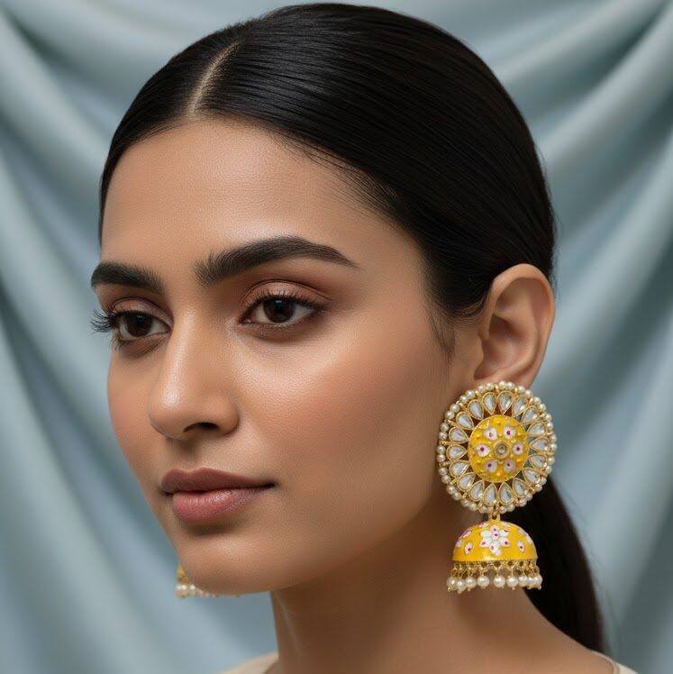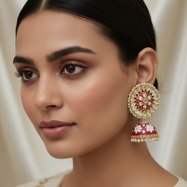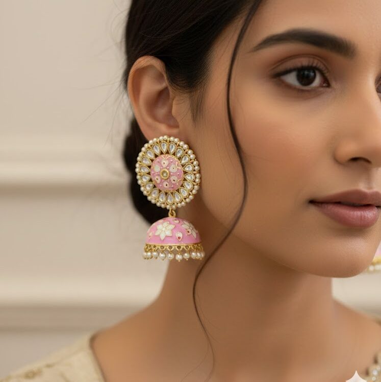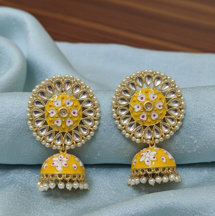 Tags: Elegant Earrings, ethnic jewellery, KundanJhumkas, Meenakariearrings