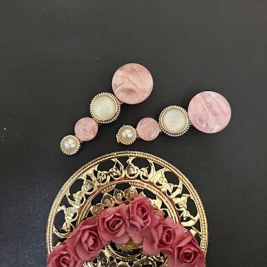 Marble Finish: Showcases large, round cabochons with a stunning pink marble effect.