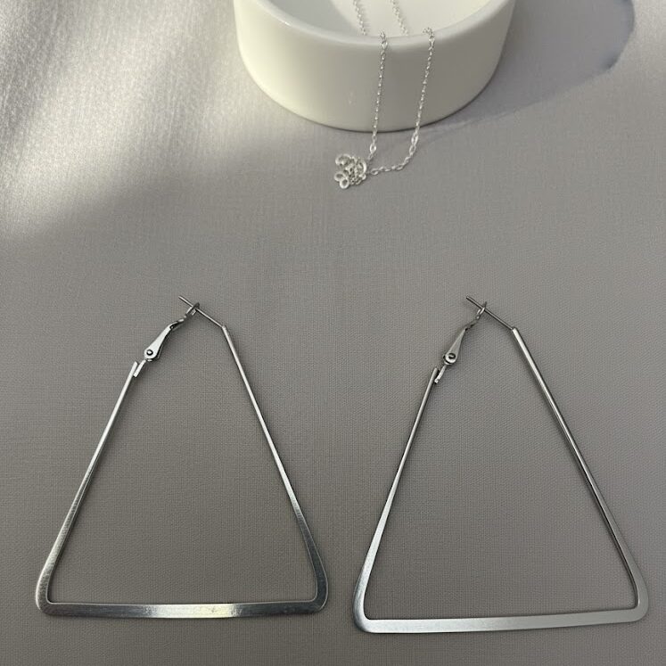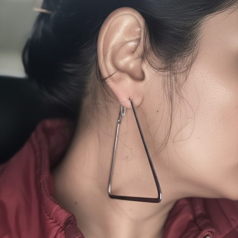 Elevate your everyday look with these Ishvarya Shikhar earrings, featuring a bold, oversized triangular hoop design. Crafted with a sleek metallic finish, these geometric statement pieces offer a modern, architectural aesthetic that effortlessly transitions from casual to high-fashion styles.
