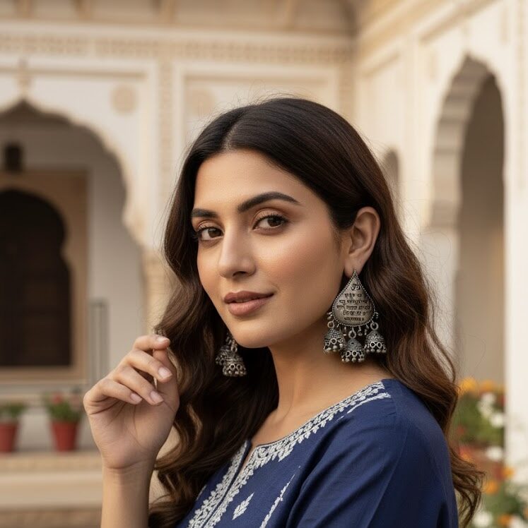 Tags: BohoEthnic, Jhumka Style, OxidizedEarrings, SilverTonedJewellery, SpiritualAccessories