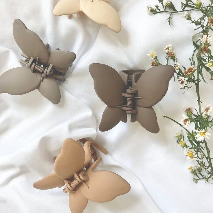 Trendy matte-finish claw clip with a butterfly design that offers a strong grip and a stylish everyday look.